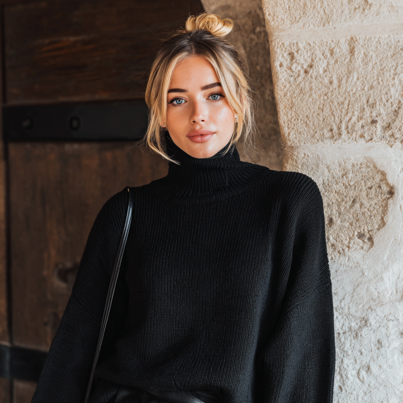 Their black sweaters particularly shine in versatility. Easily dressed up with tailored trousers for work or paired with jeans for casual outings, these pieces transition seamlessly between different settings without missing a beat.