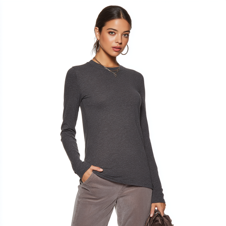 This gray long sleeve top by Liv Milano is an effortlessly stylish choice for everyday wear. Designed with a relaxed fit, it blends comfort with a modern aesthetic. The neutral gray tone makes it a versatile piece to mix and match with various outfits, enhancing your wardrobe with understated sophistication.