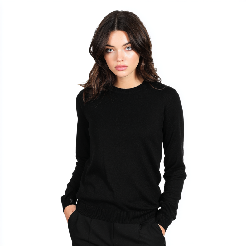 Simple yet sophisticated, this black pullover sweater from Liv Milano is a must-have wardrobe staple. Made with luxurious viscose fabric, it offers a sleek and flattering fit while ensuring all-day comfort. Perfect for pairing with jeans, skirts, or tailored trousers, this versatile sweater is ideal for any season.